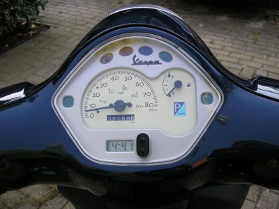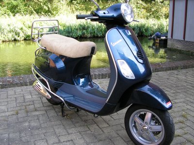 • bijna nog nieuwe scooter vespa 4,tkt/piaggio. blauw metalic met beugels/bagage rek slechts:2,168 klm(word niet meer op gereden) staat binnen met ing-afst-alarm bouwjaar:1 sept-2007 met helm en verz,slot prijs is,2.500-