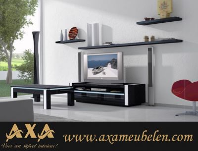 • italiaans design hoogglans zwart woonkamer meubel led licht