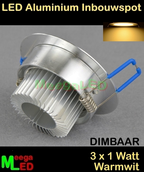 • LED inbouwspot spot 3W - 3 x 1watt - Warmwit 2900K - DIMBAAR