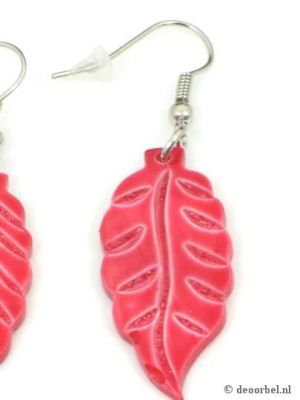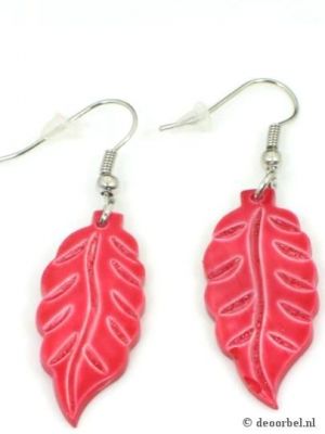 Rode bladvormige parelmoer oorbellen (hanger).
