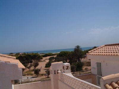 • De bungalow staat in een gesloten en auto vrije urbanisatie. De bungalow heeft een parkeerplaats in de ondergrondse garage. De urbanisatie heeft een mooie gezamelijke mediterane tuin met zwembad, restaurant en tennisbanen. Beneden is er een balkon, huiskamer met een open keuken, sateliet-tv met nederlands zenderpakket, radio, wasmachine en toilet. Boven bevinden zich 1 slaapkamer met 1 2persoonsbed en 1 slaapkamer met 1 2persoonsbed en 1 stapelbed, een badkamer met een ligbad, een douche en een 2de toilet. Totaal 6 slaapplaatsen. Op de 2de verdieping vindt u een dakterras met buitendouche en uitzicht op zee. Winkels en de zee met zandstrand zijn op loopafstand. Afstand tot het vliegveld 20 (auto)minuten. Halen en brengen naar het vliegveld is mogelijk. Kindermeubilair huren is mogelijk. Meerdere huizen langs elkaar huren is mogelijk.